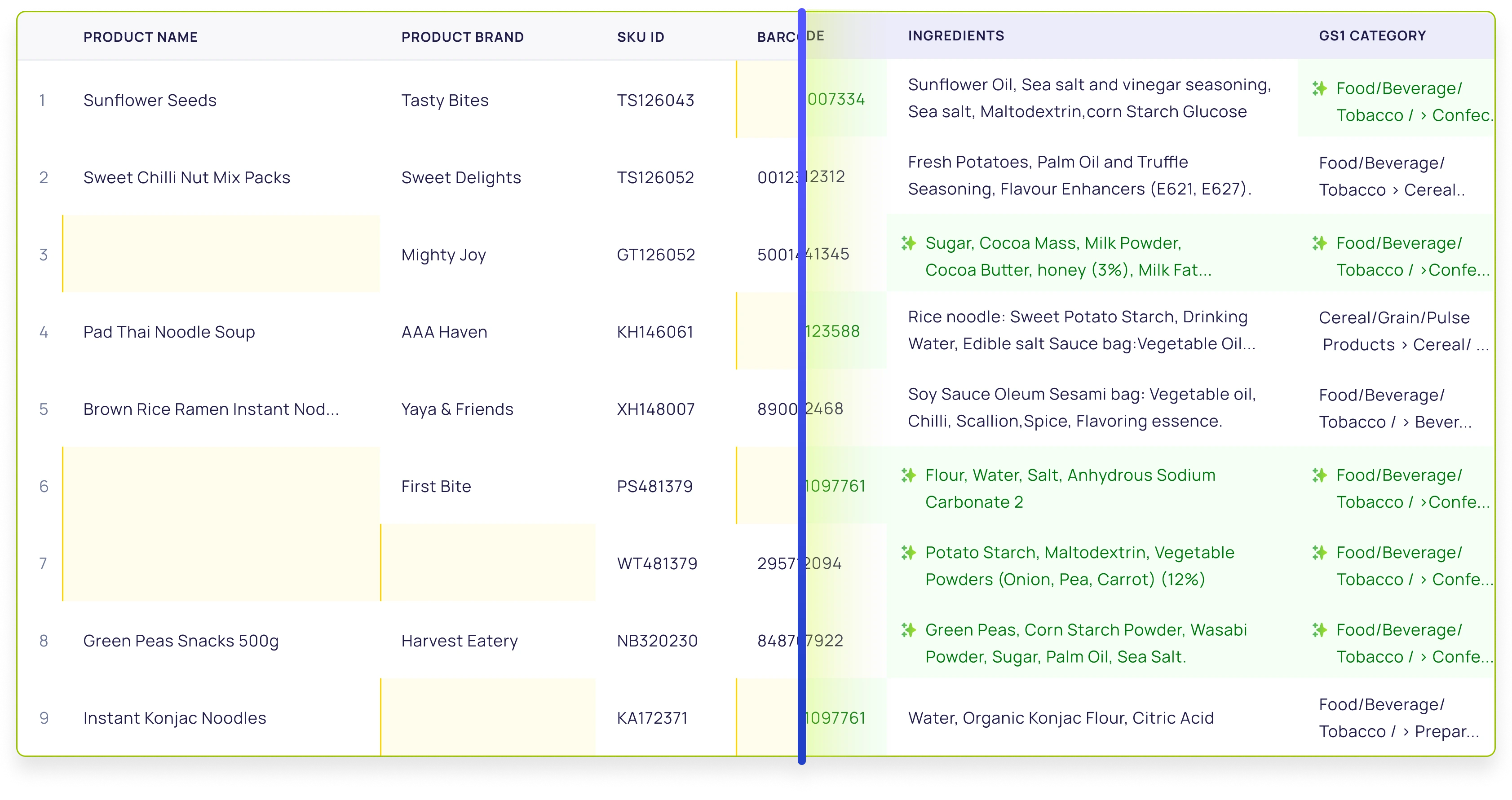 - All Categories Supported: Whether your product falls into Food & Beverage, Health & Lifestyle, Beauty, or other categories, our AI seamlessly adapts to industry-specific data attributes.
