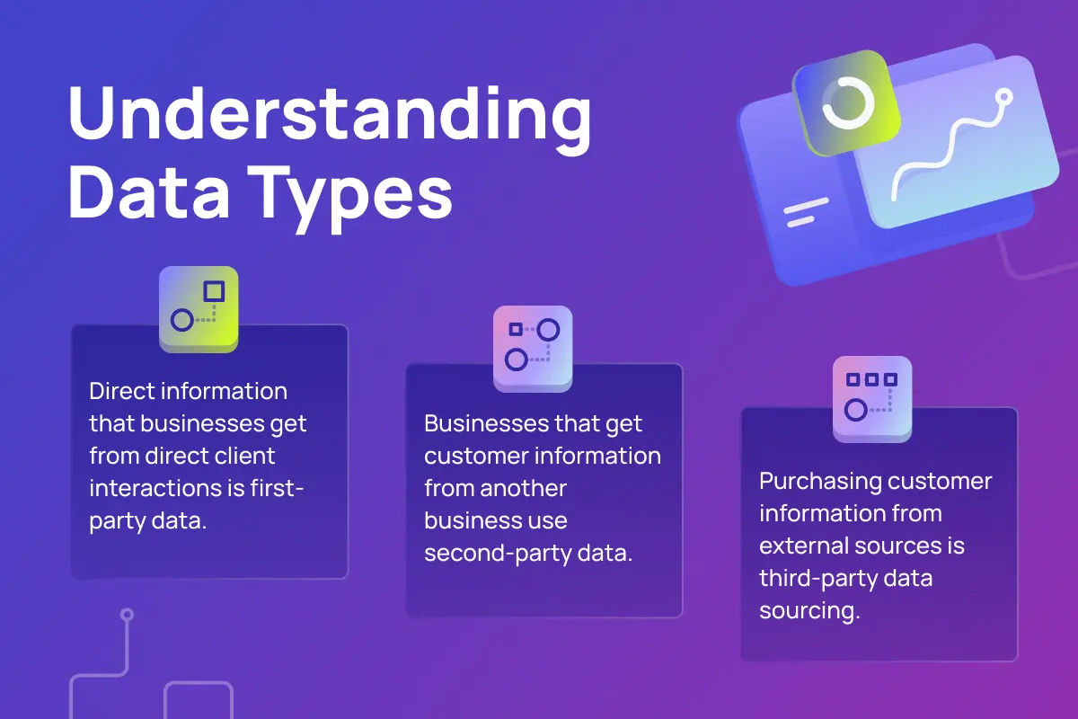 Third-party data increases the audience reach. This data type helps businesses expand their reach and enter new markets.