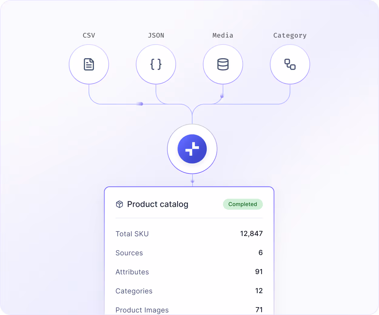 Turn minimal inputs into complete product content. The Context Graph applies your rules and sources to enrich every field.